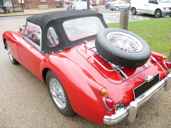 The new model after the T-Series was the MGA. First conceived in the early fifties, but production held until 1955. While still an open two-seater it had a wider tapering steel frame chassis so that the passengers sat between the rails rather than on them. A virtually monocoque pressed steel body sat on the chassis. The engine had changed with the first of the “B” series engines at 1489cc with a new four forward speed gearbox. The engine was upgraded to 1588cc in 1959 to provide a power boost and again to 1622cc before production was superseded by the MGB in 1962. Independent front suspension, rack and pinion and drum brakes were featured, later much needed disc brakes were fitted. Production was an amazing 100,000 cars in just seven years. A short lived Twin Cam engine model was built but consisted of only 2000 cars. The body for all models was an open two seater with a pretty two seat coupe also available. Many went to America, particularly the west coast